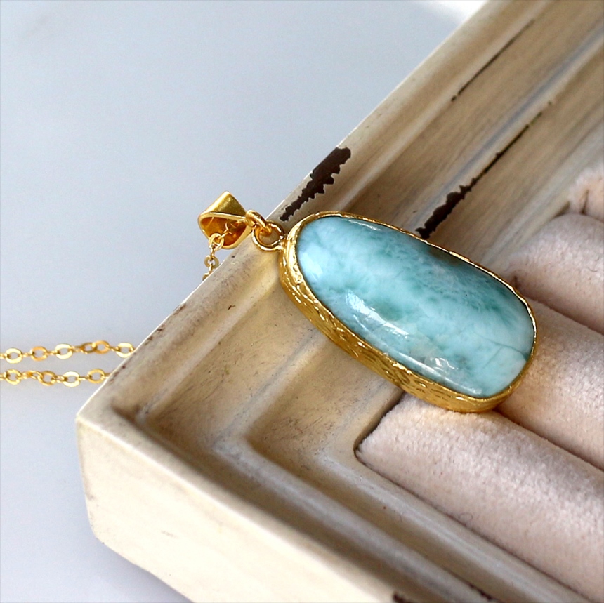 ラリマー ペンダント 22KGP カボション アルサメイア 天然石一粒ネックレス トルコジュエリー