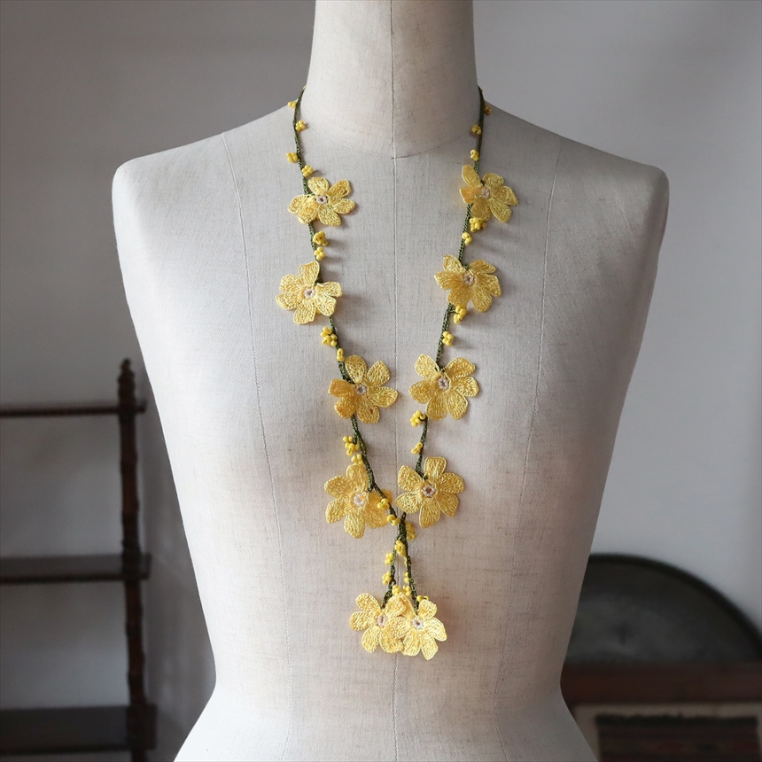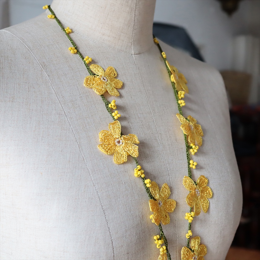 オヤ トゥオヤ ネックレス トルコのレース編み パパテヤ イエロー