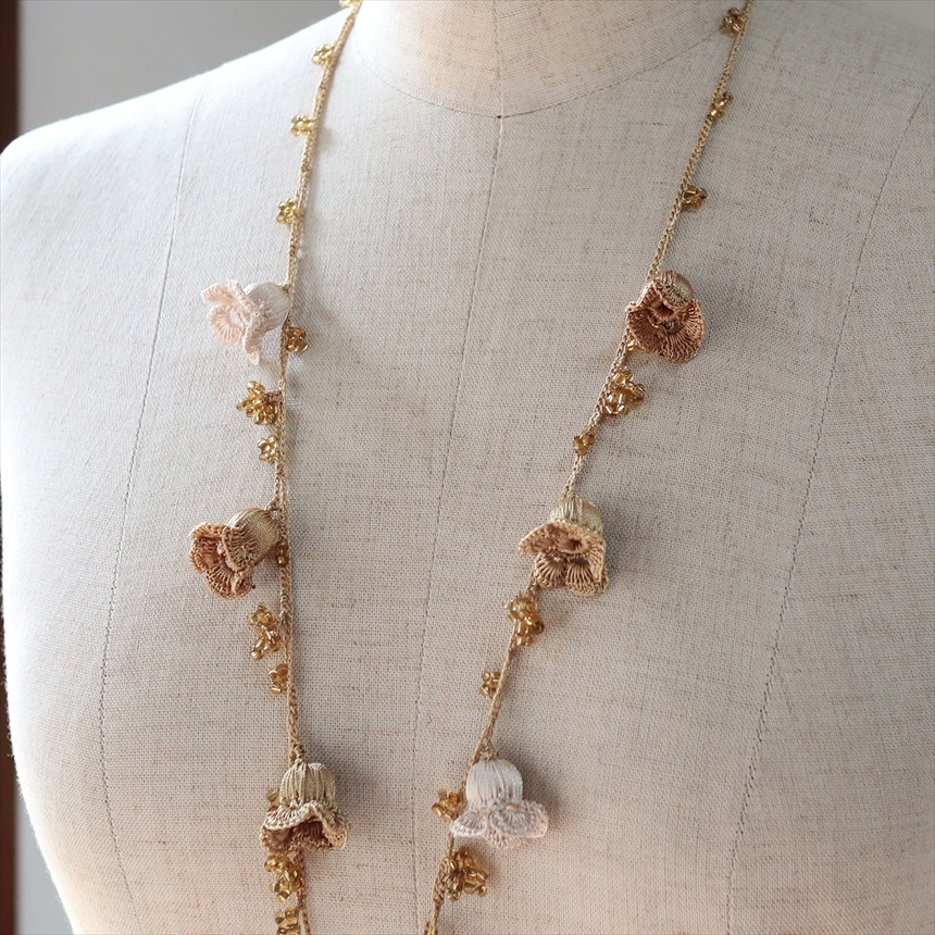 トルコのレース編み「オヤ」ネックレス すずらん ベージュ