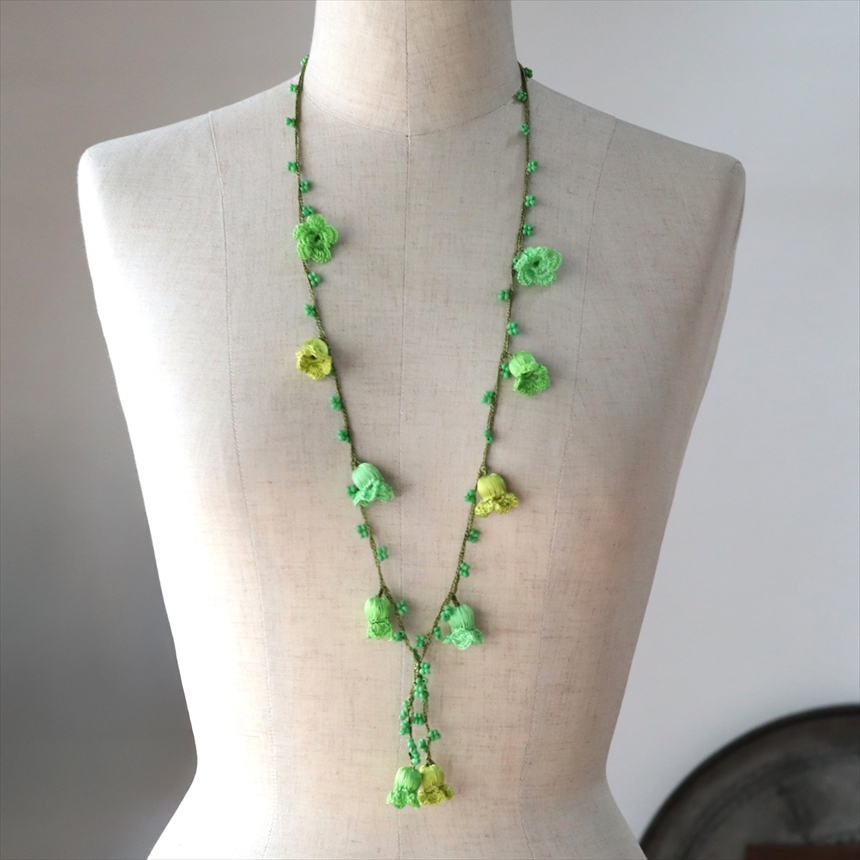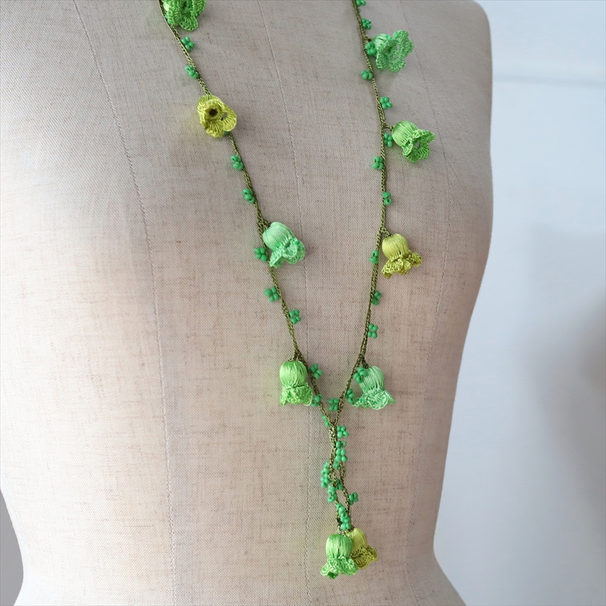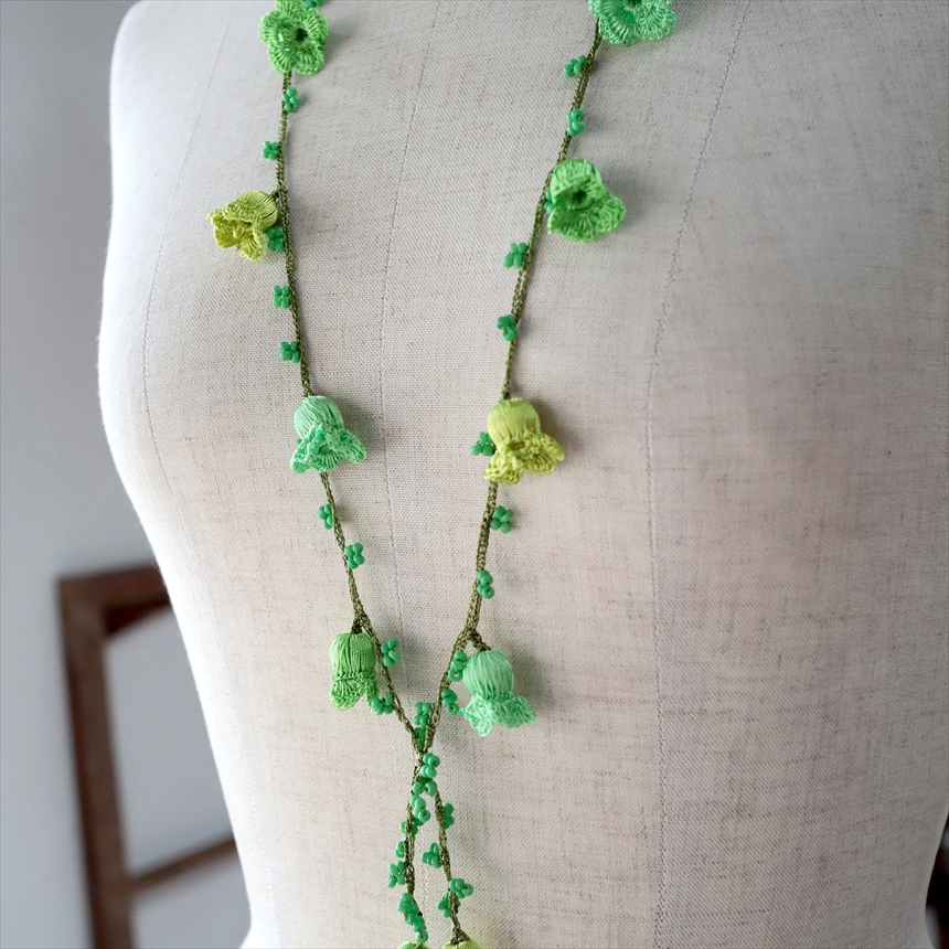 トルコのレース編み「オヤ」ネックレス すずらん ライトグリーン