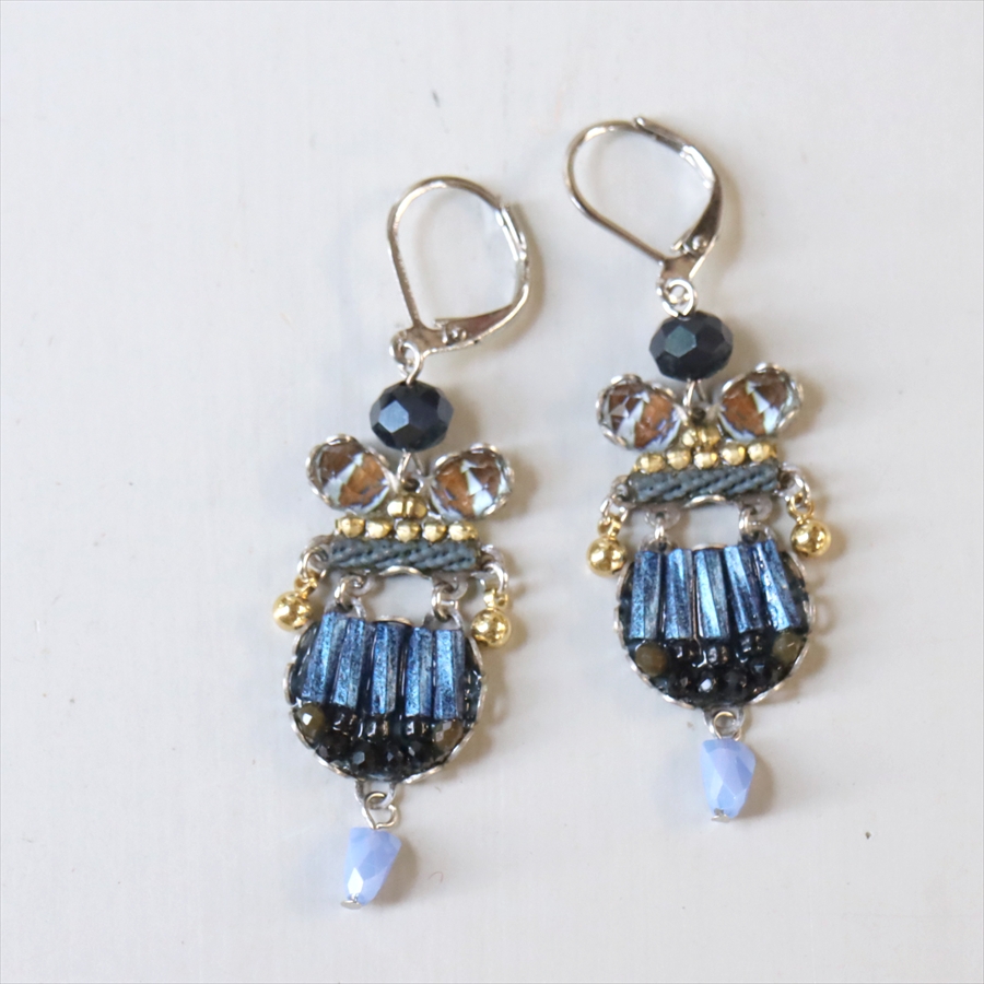 深い藍色の静かなる美しい孤高の世界観のIndigo Summitsという名のシリーズ。細やかなビーズで美しいブルーグラデーションが魅力のピアスです。