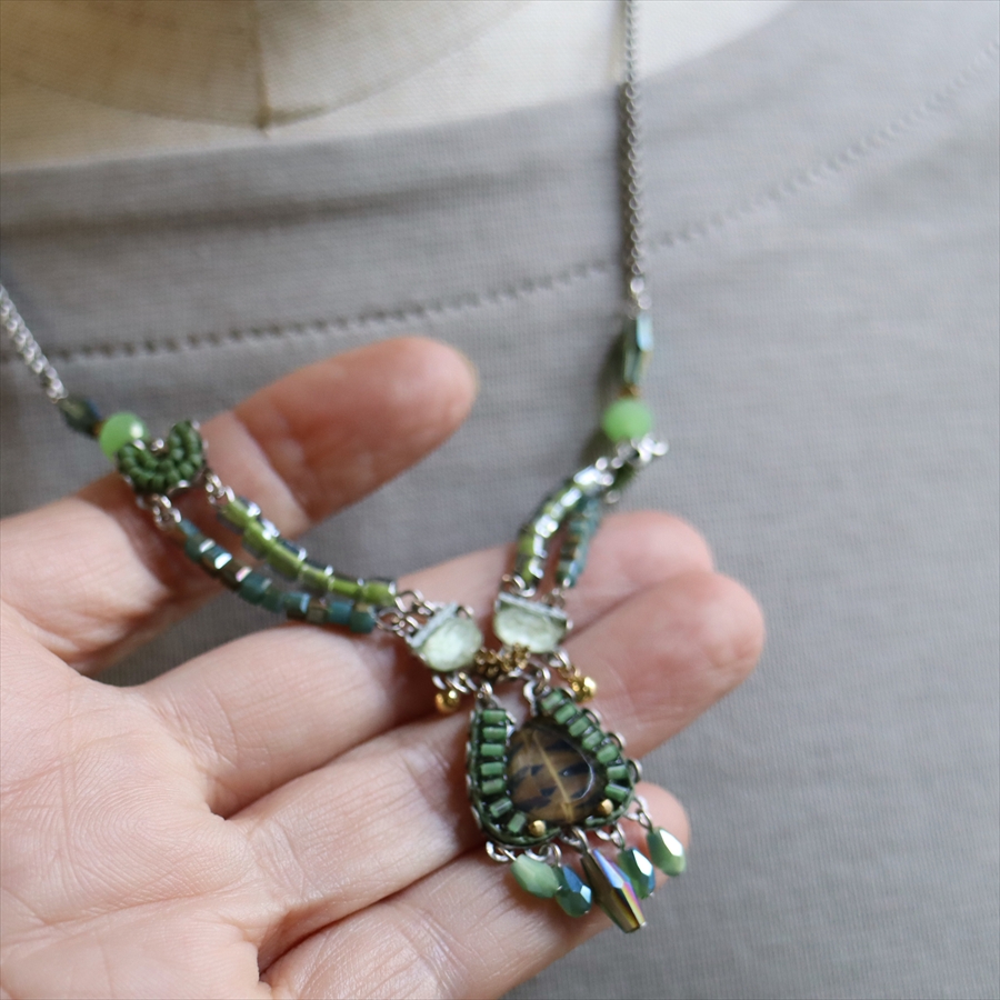 摘みたての緑の清涼感を表現したような、Eucalyptus(ユーカリプタス)という名のシリーズのネックレスです。