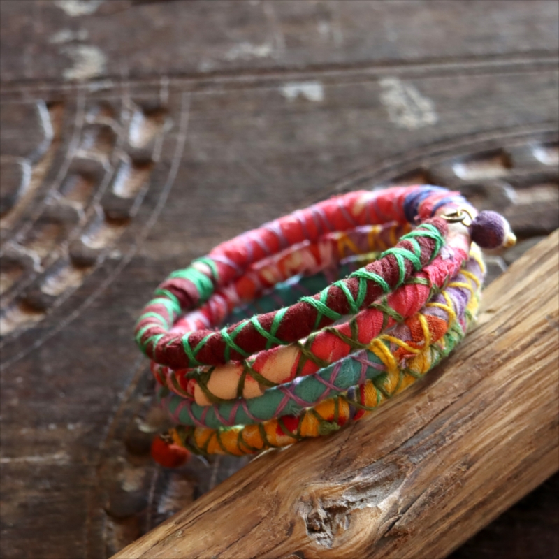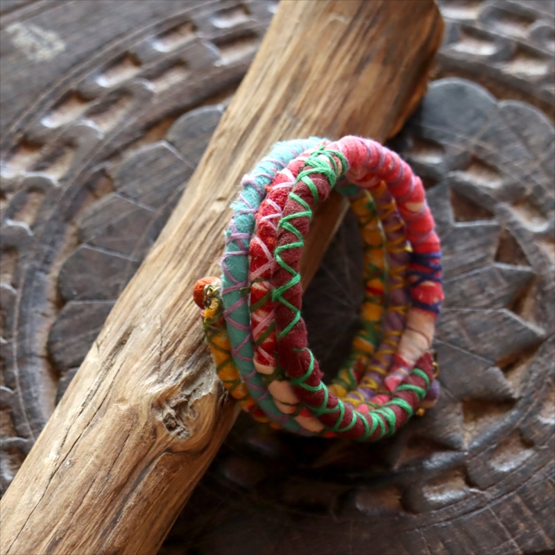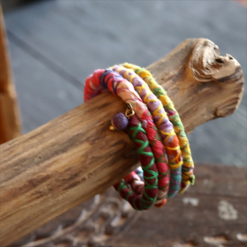 リサイクルサリー スパイラルバングル インド 手作りブレスレット