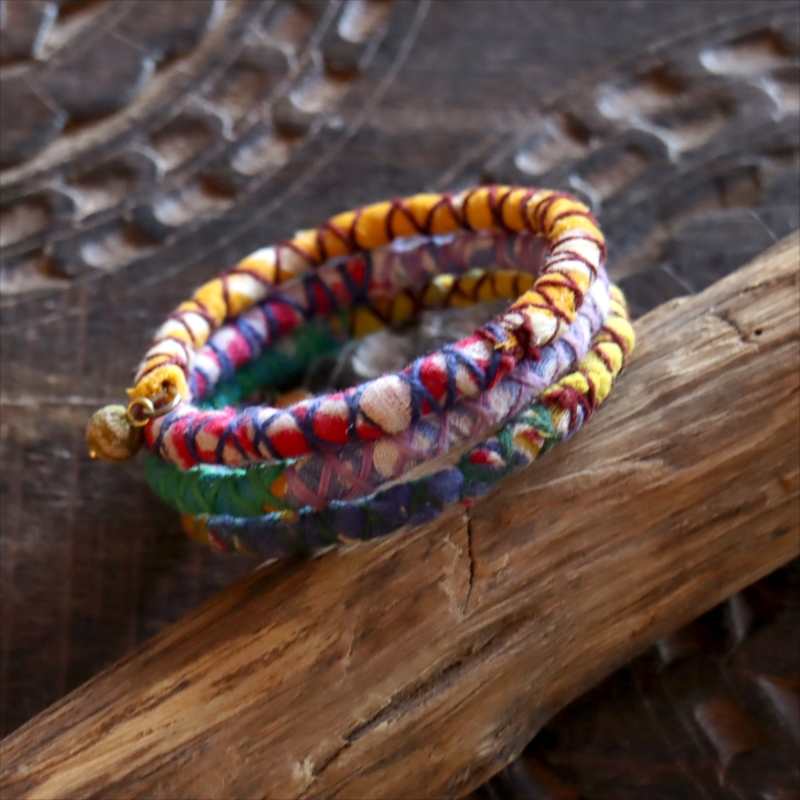 リサイクルサリー スパイラルバングル インド 手作りブレスレット