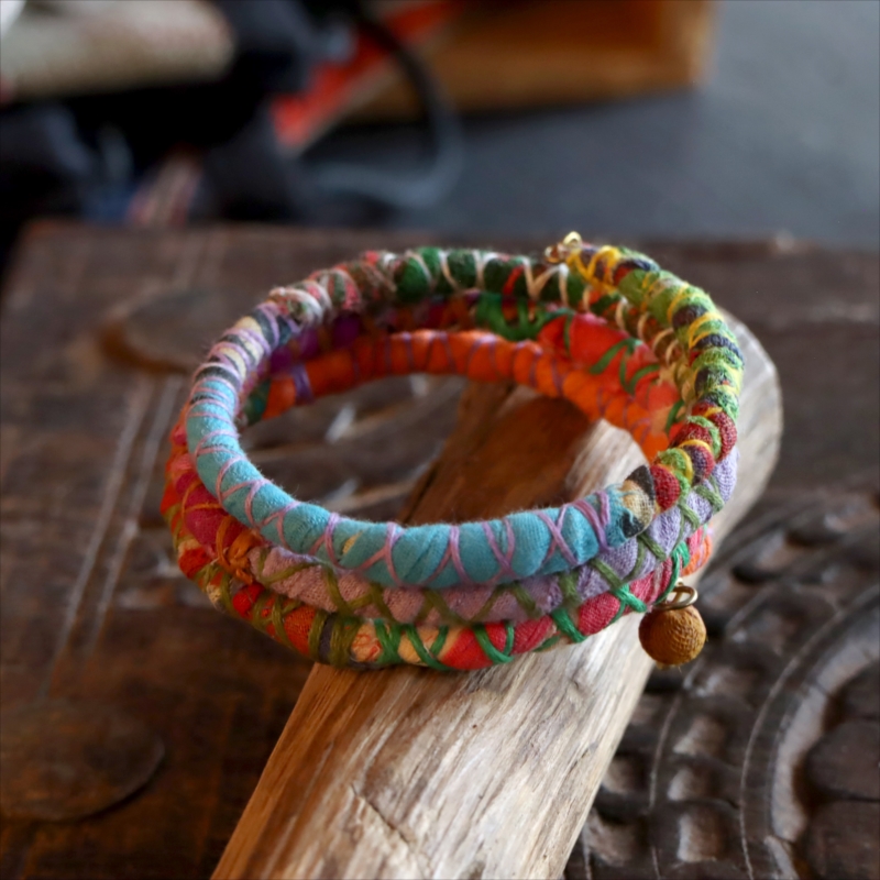 リサイクルサリー スパイラルバングル インド 手作りブレスレット