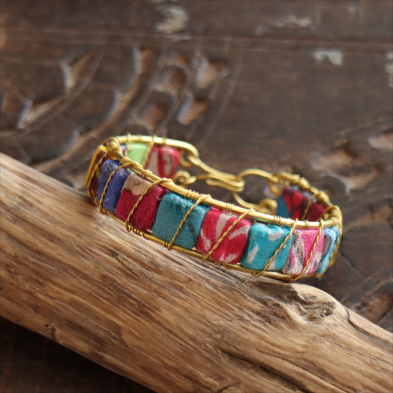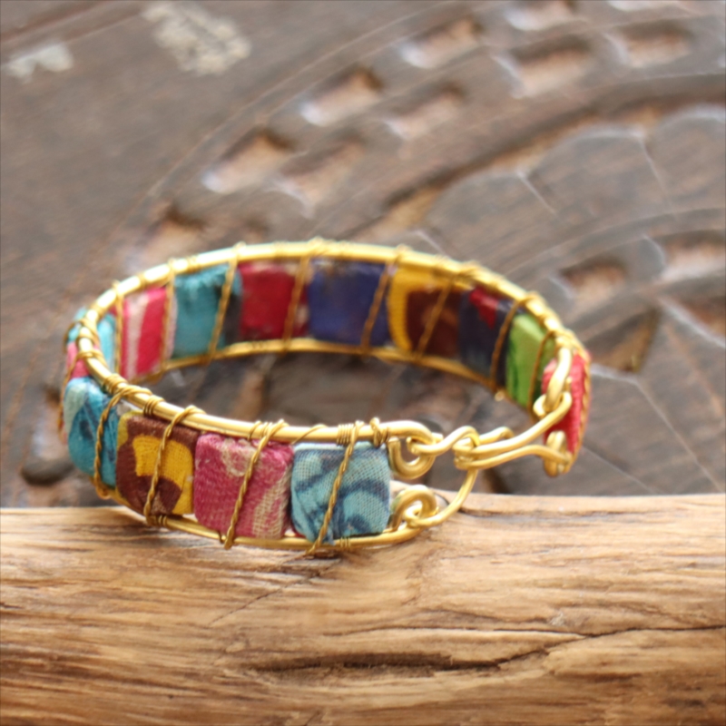リサイクルサリー バングル 布 クラフトビーズ カラフルな四角いタイル