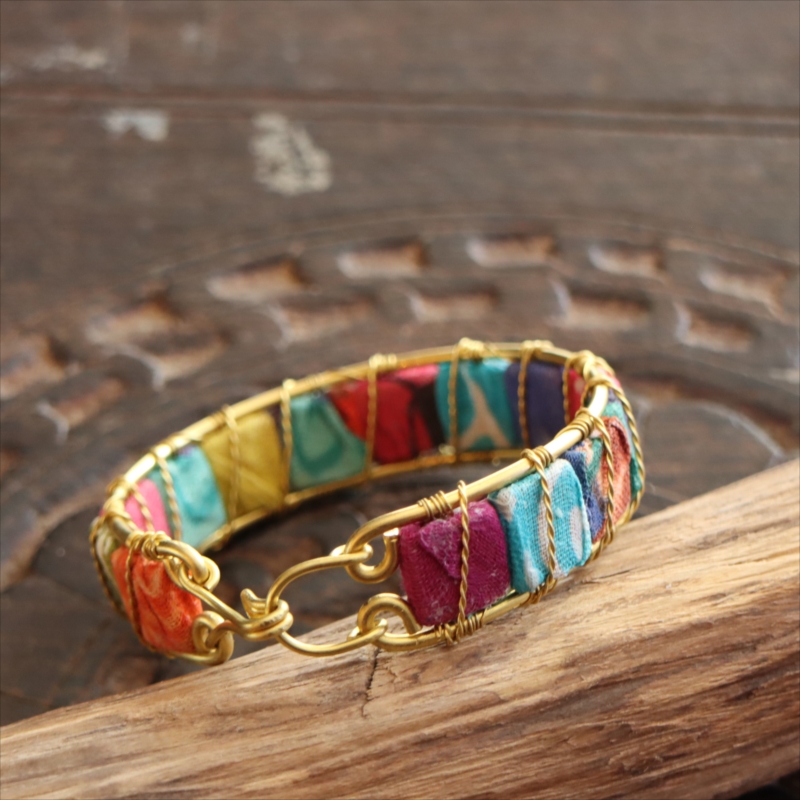 リサイクルサリー バングル 布 クラフトビーズ カラフルな四角いタイル