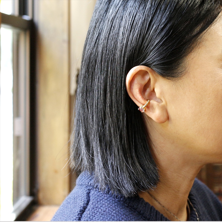 淡いピンクのグラデーションが美しい、ピンクトルマリンのイヤーカフ。ボールチェーン調のゴールドアームが柔らかな印象です。※石の大きさ0.7×0.4cm