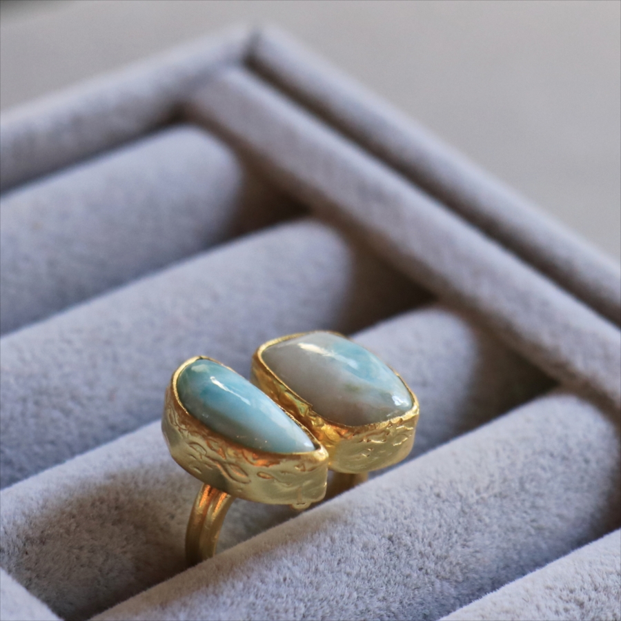 ラリマーダブルリング スクエア&クレセント アルサメイア トルコジュエリー カラーストーン