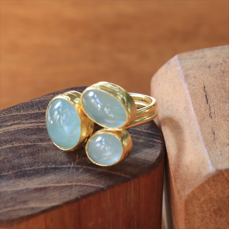 アクアマリン リング 3ストーン アルサメイア トルコジュエリー 3つの石