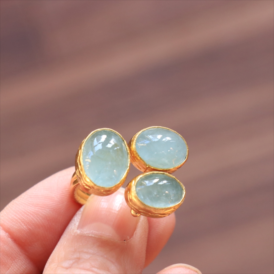 アクアマリン リング 3ストーン アルサメイア トルコジュエリー 3つの石