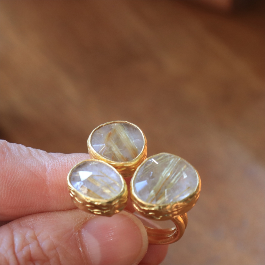 ルチルクォーツ リング 3ストーン アルサメイア トルコジュエリー 3つの石