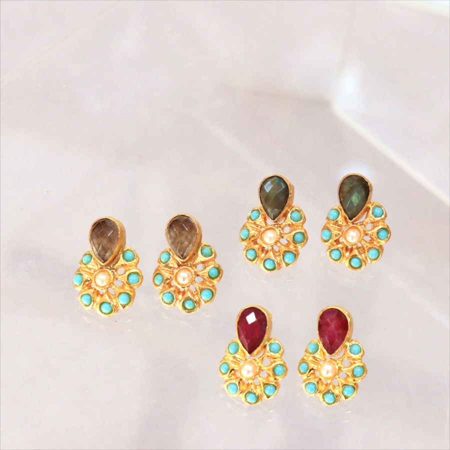 アルサメイア ピアス 古代王朝のデザイン 天然石22Kゴールドプレーテッド トルコジュエリー 色石