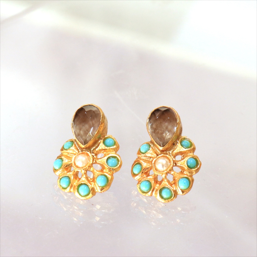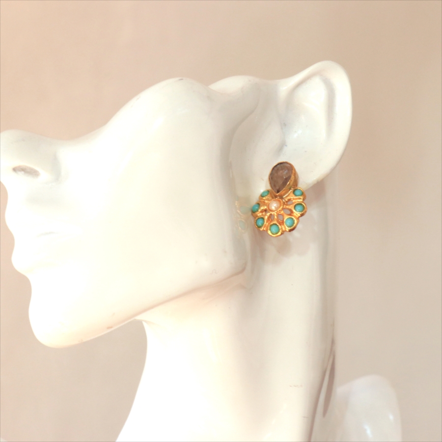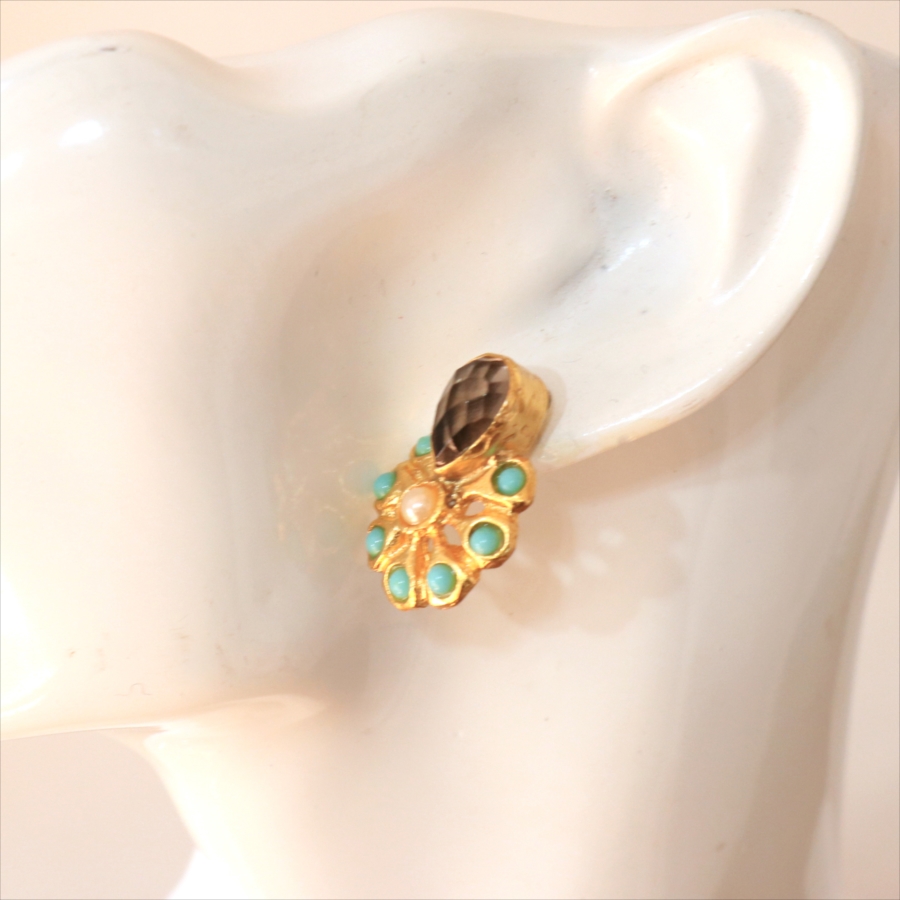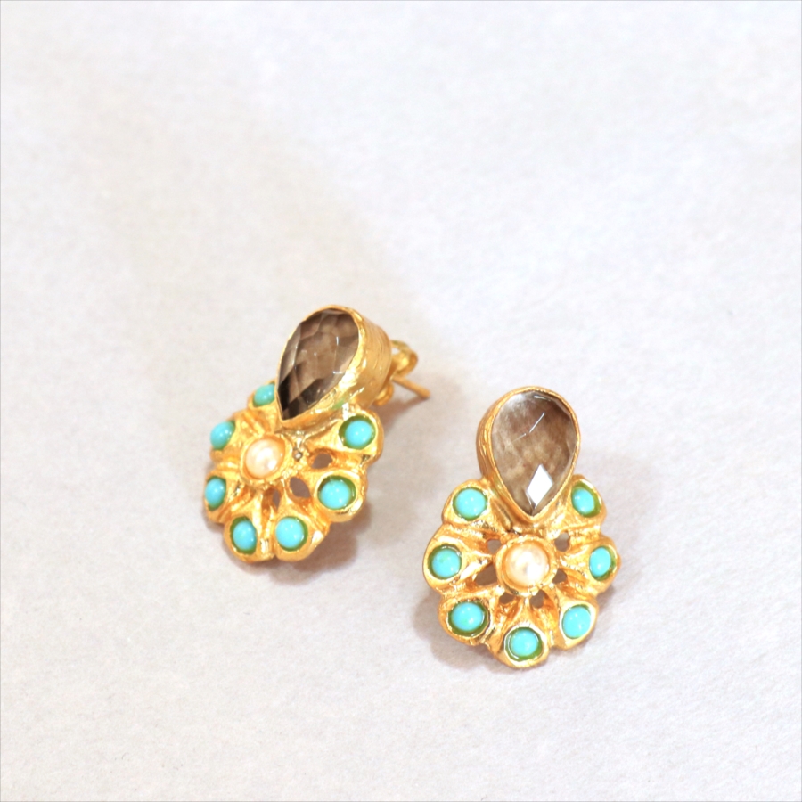 | 天然石(スモーキークォーツ・ターコイズ)、真鍮(22kゴールドプレーテッド) |