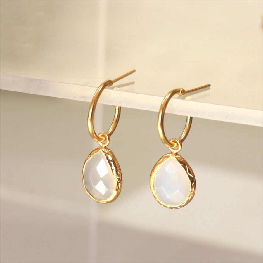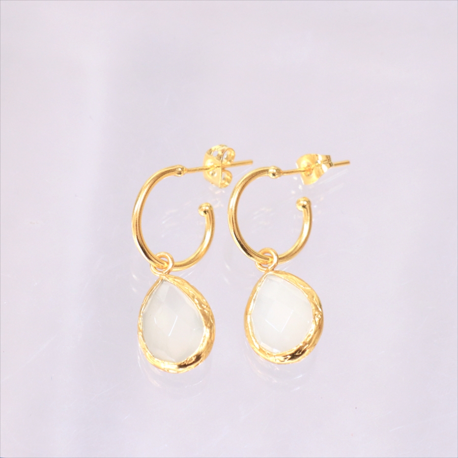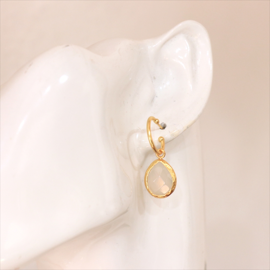 アルサメイア フープ ピアス 揺れるドロップ形 ホワイトカルセドニー