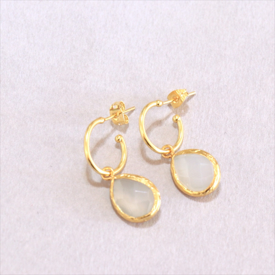 フープピアスにドロップ形のストーンを合わせた動きのあるデザインのピアスです。