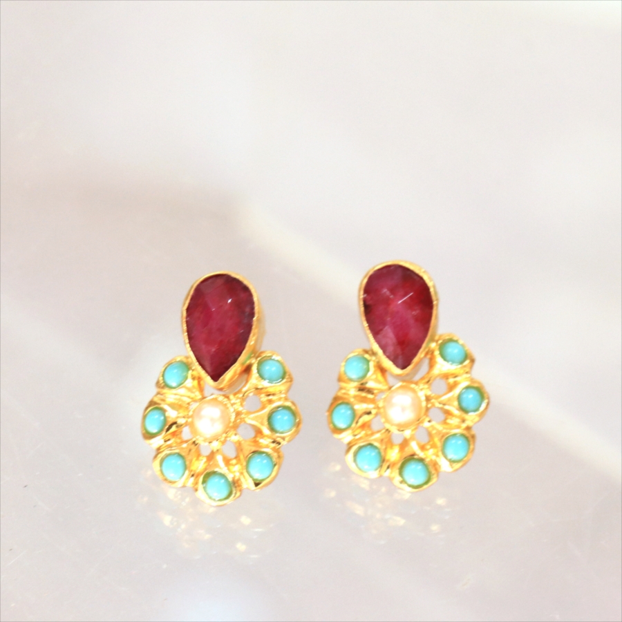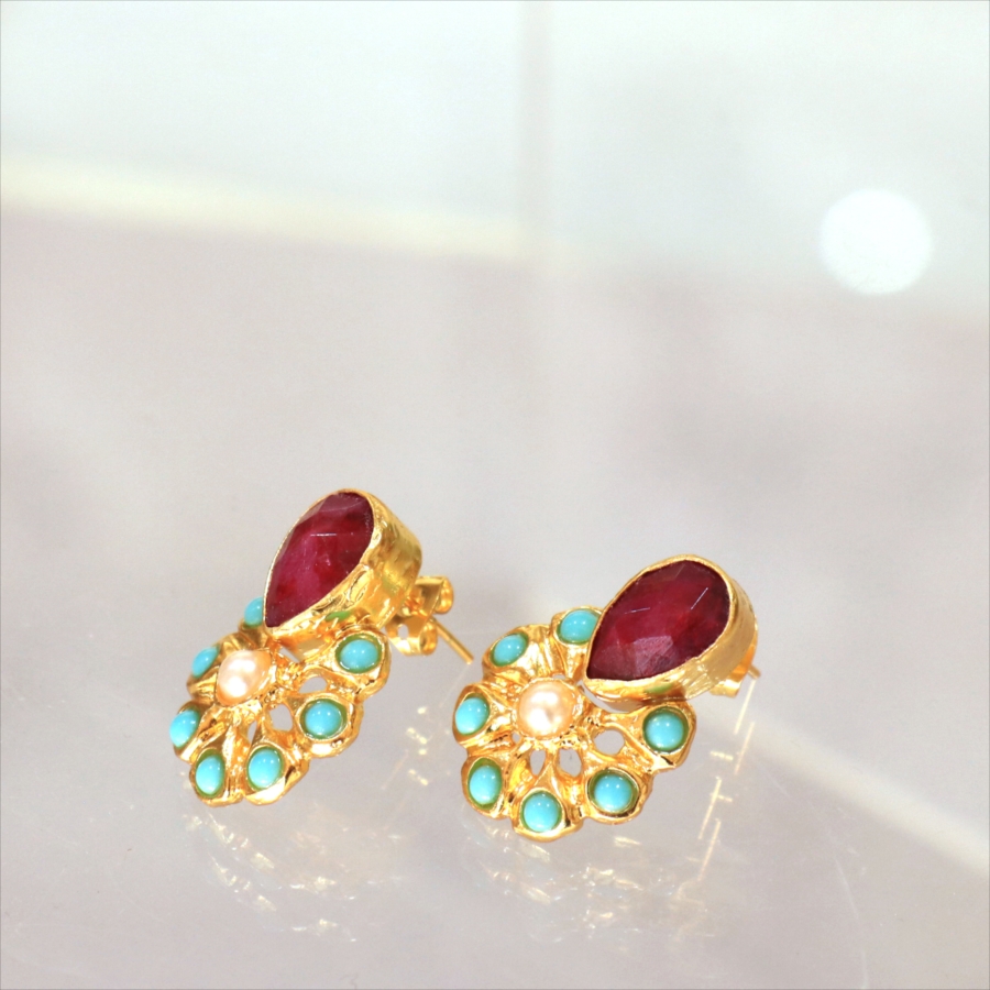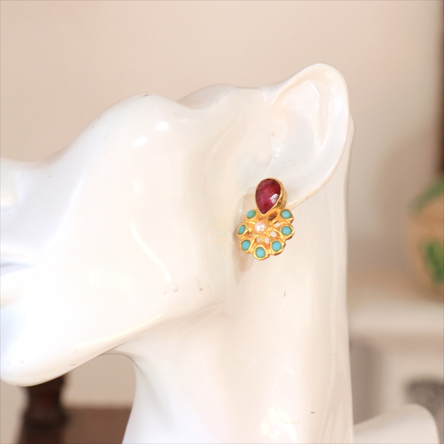 アルサメイア ピアス 古代王朝のデザイン 天然石22Kゴールドプレーテッド トルコジュエリー 色石