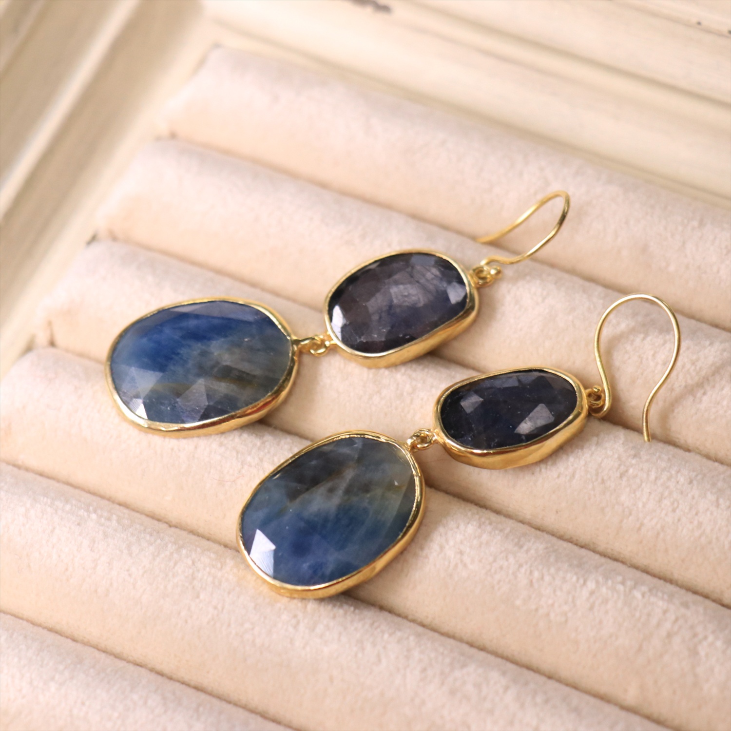 サファイアは光の当たり方によって様々に美しく変化して見えますサファイアの産地はインド、デザインと制作はイスタンブル@トルコです。