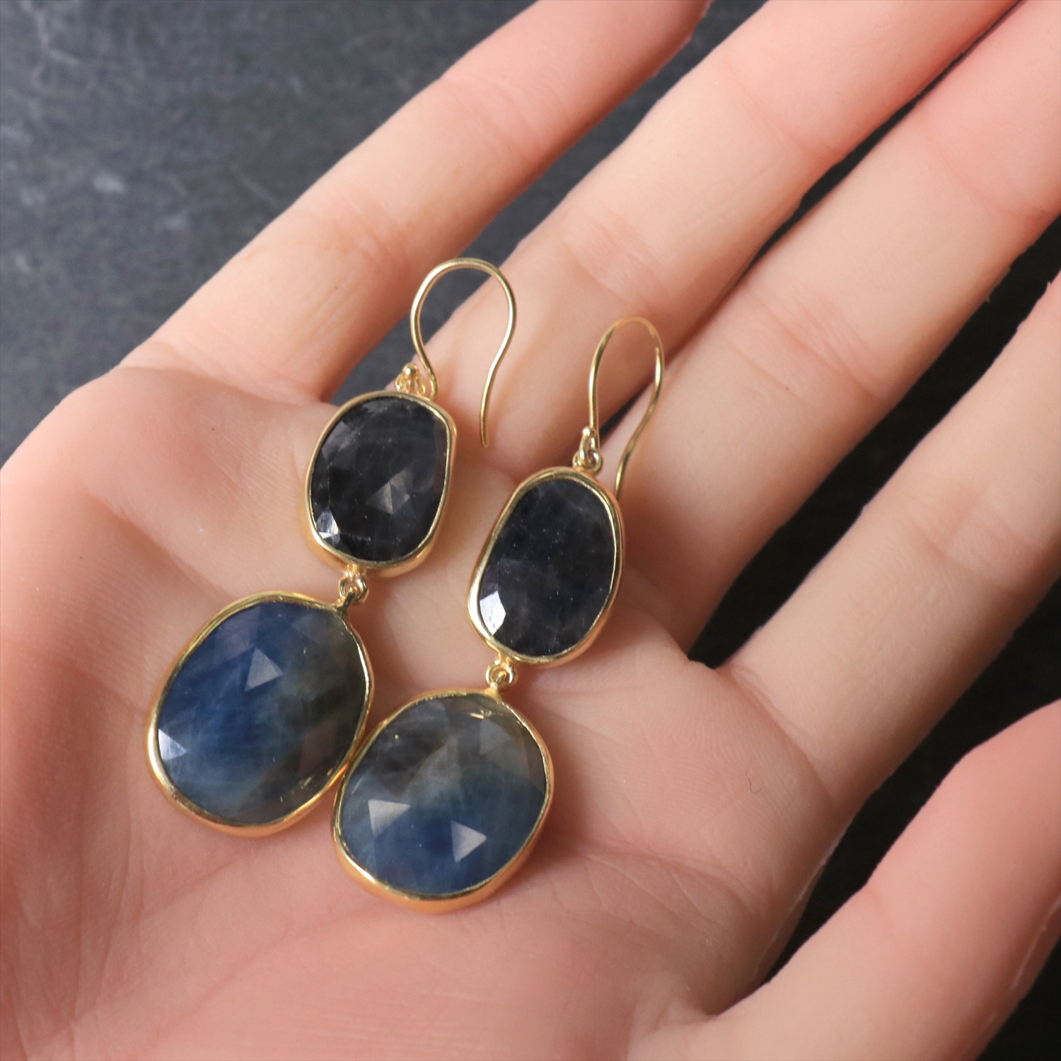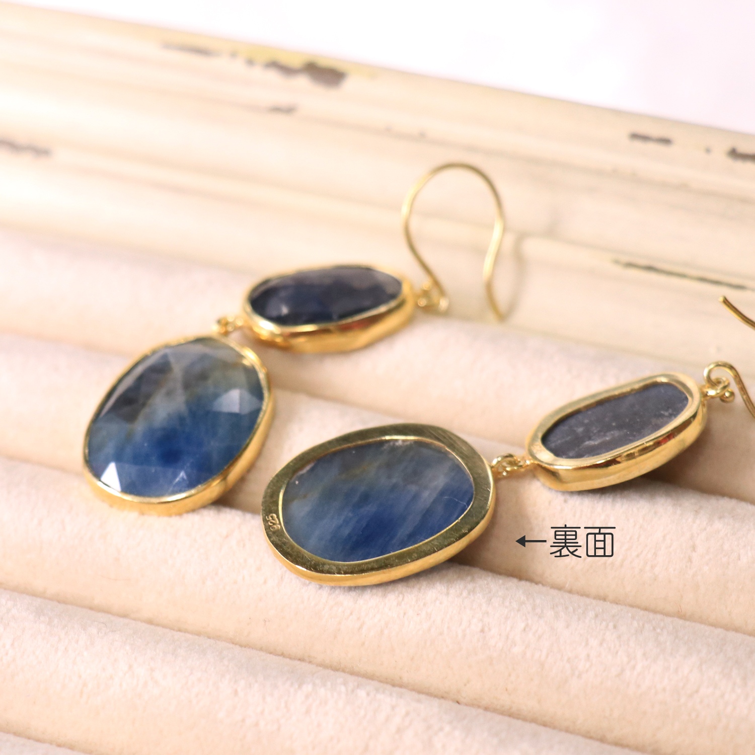 ブルーサファイア 2粒のピアス シルバー925(18KGF) 【現品】sapphire & Silver earrings