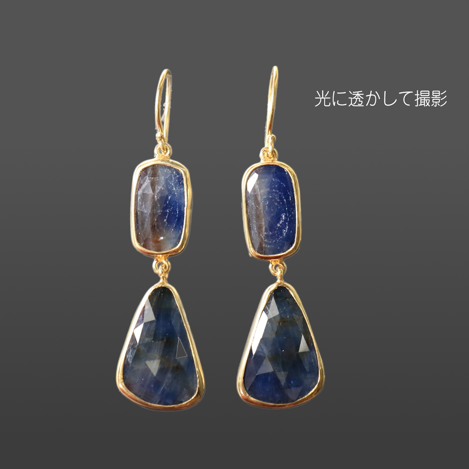ブルーサファイア 2粒のピアス シルバー925(18KGF) 【現品】sapphire & Silver earrings
