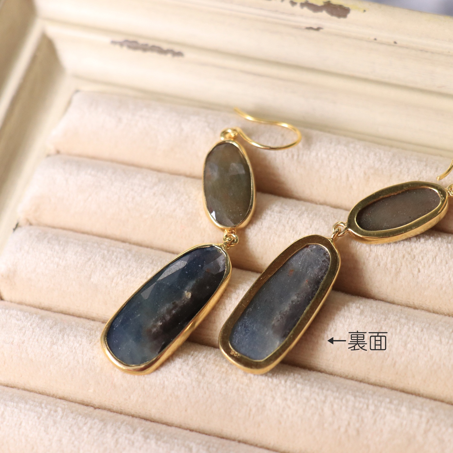ブルーサファイア 2粒のピアス シルバー925(18KGF) 【現品】sapphire & Silver earrings