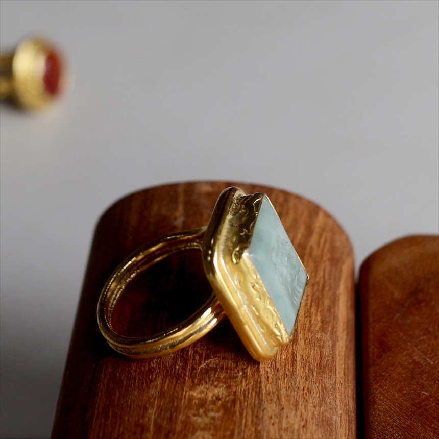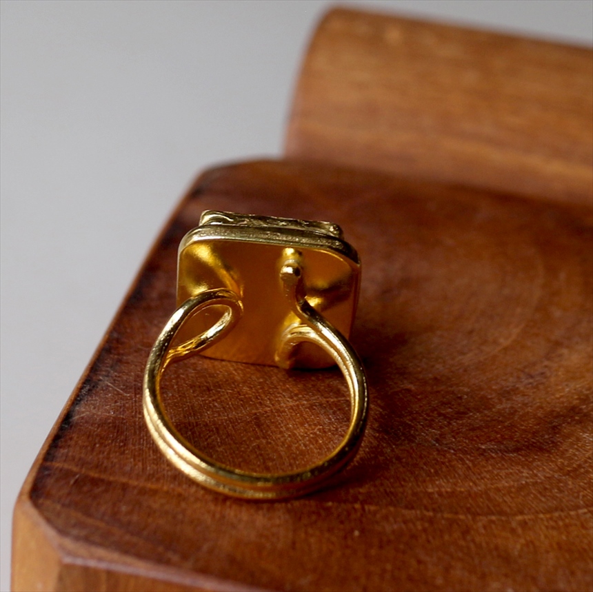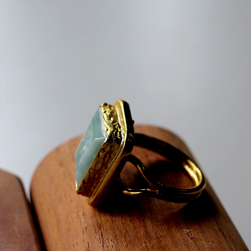 アルサメイア インタリオリング スクエア グリーンジェイド 天然石22Kゴールドプレーテッド トルコジュエリー