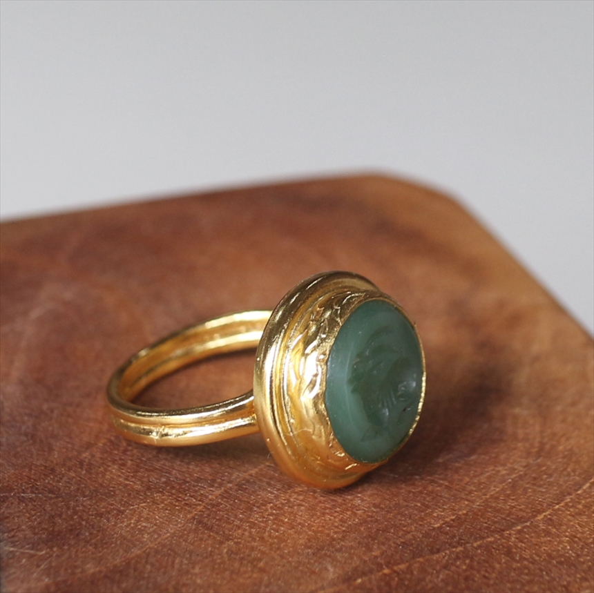 天然石に動物モチーフを、一つ一つ丁寧に沈み彫り(インタリオ)した、クラシカルな雰囲気のリングです。