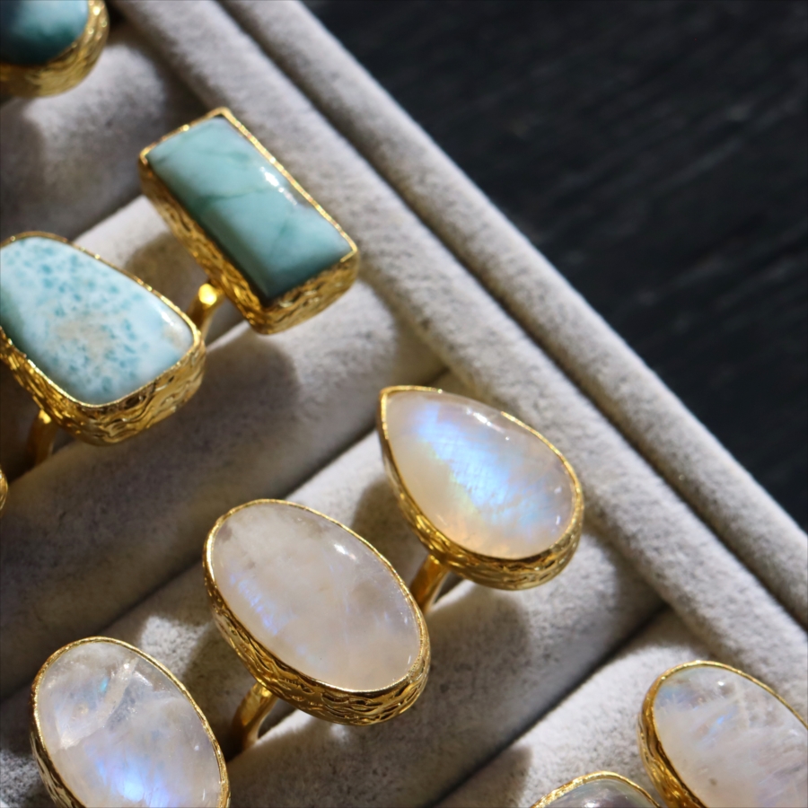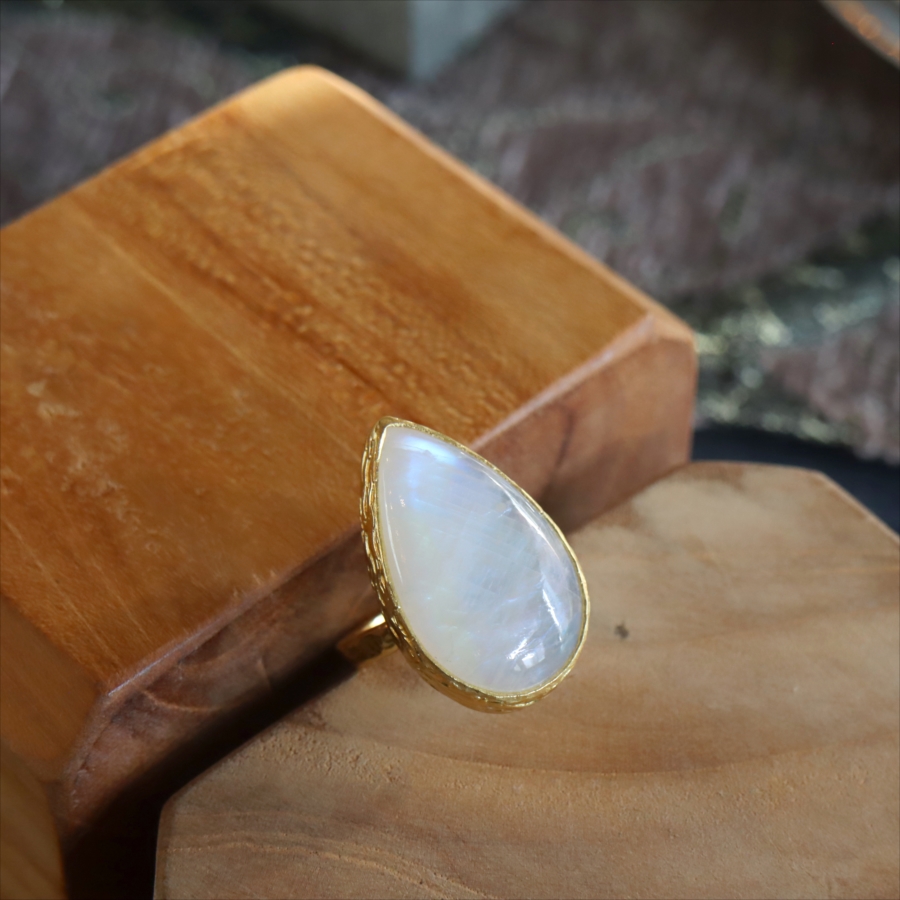 アルサメイア レインボームーンストーン ドロップリング 天然石 22kゴールドプレーテッド トルコジュエリー カラーストーン