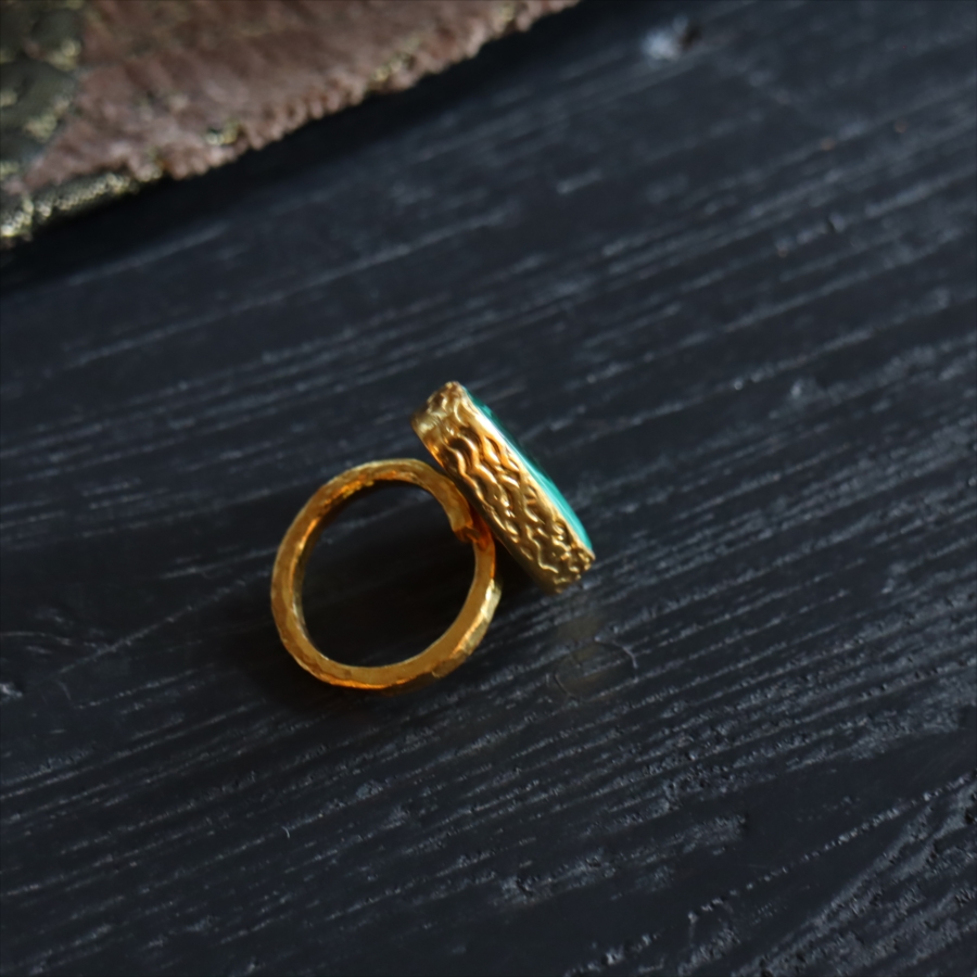 アルサメイア マラカイトリング 天然石 22kゴールドプレーテッド トルコジュエリー カラーストーン