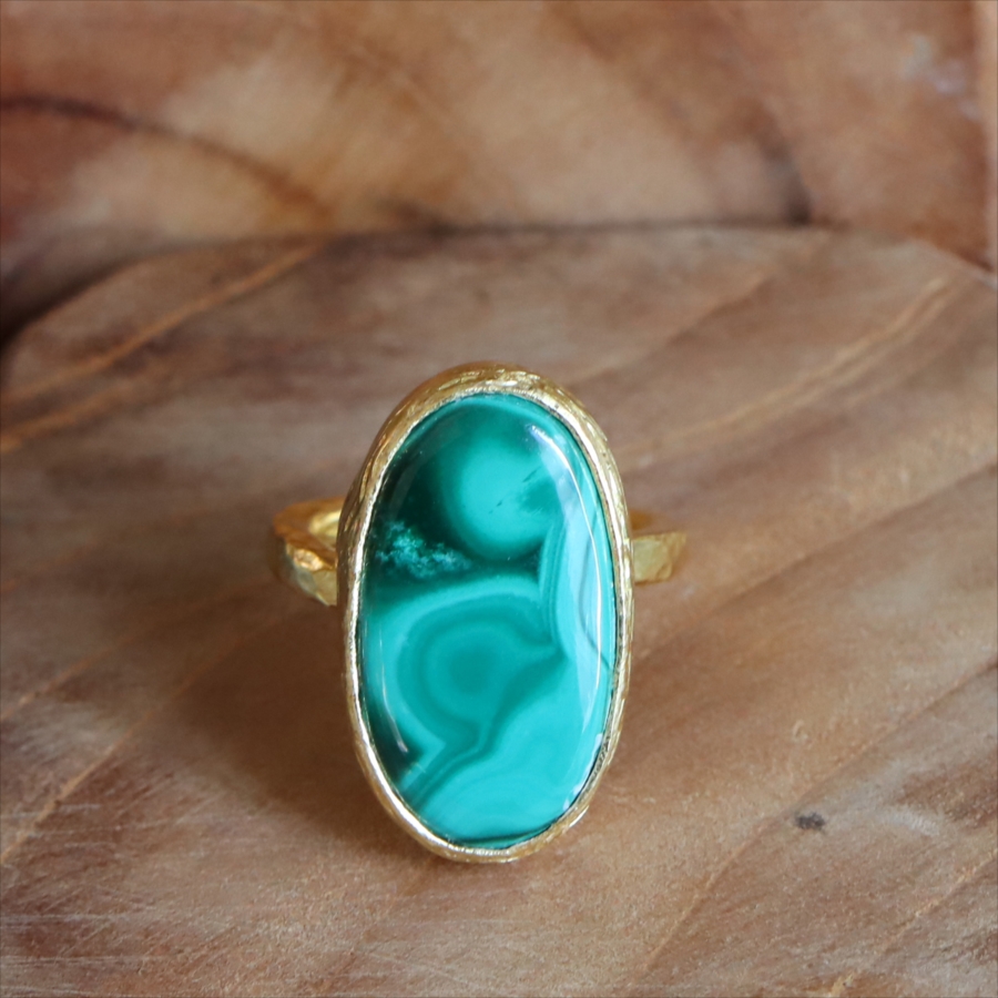 アルサメイア マラカイトリング 天然石 22kゴールドプレーテッド トルコジュエリー カラーストーン