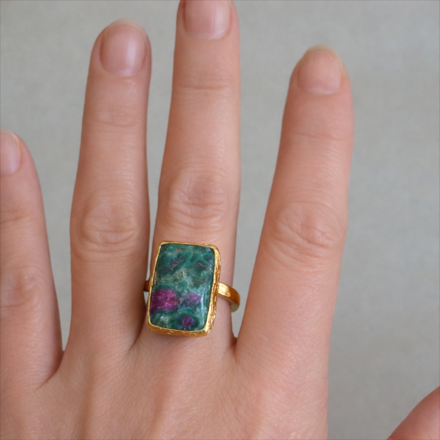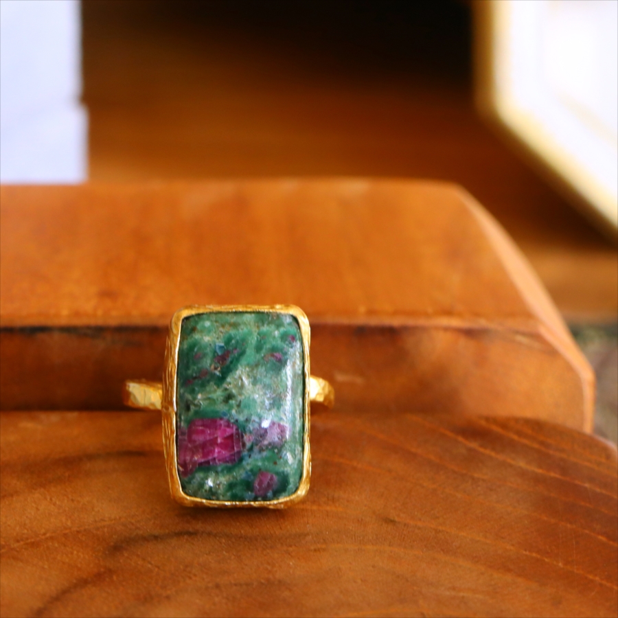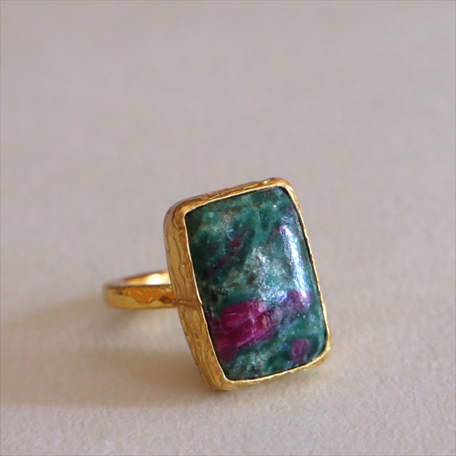 ルビーインゾイサイト リング アルサメイア 天然石 22kゴールドプレーテッド トルコジュエリー カラーストーン