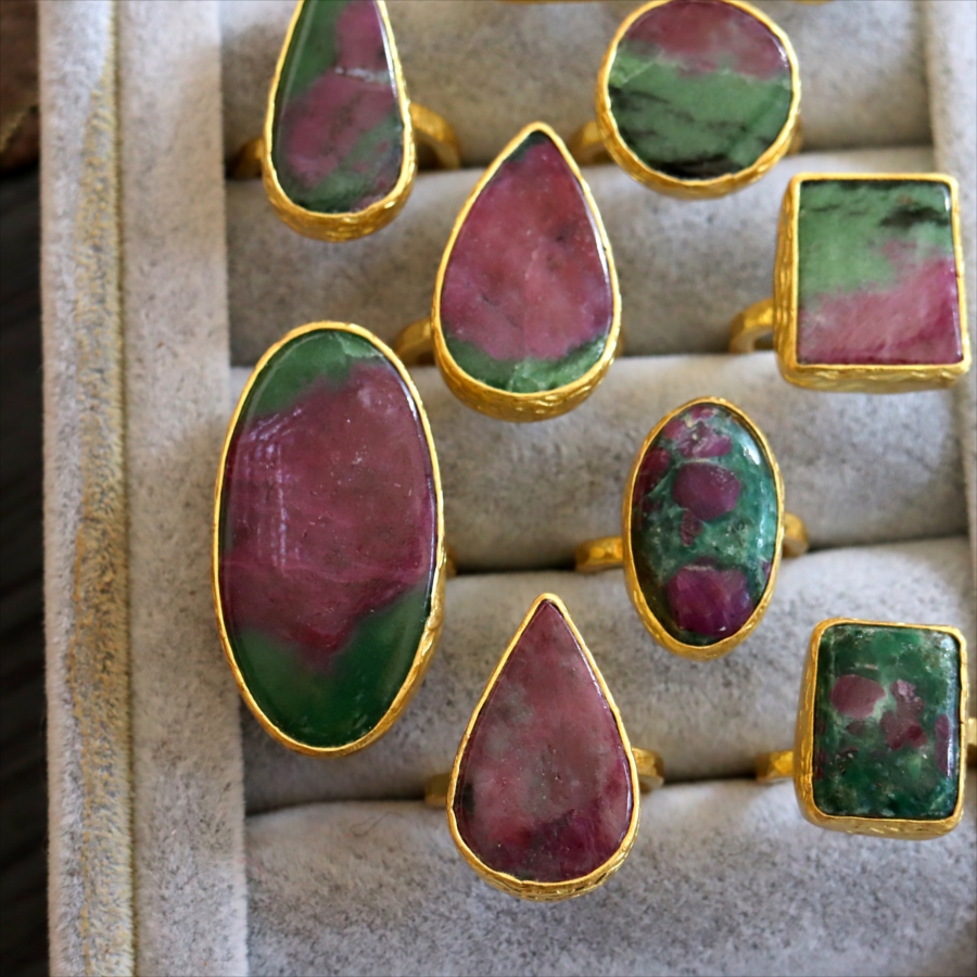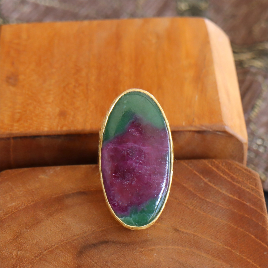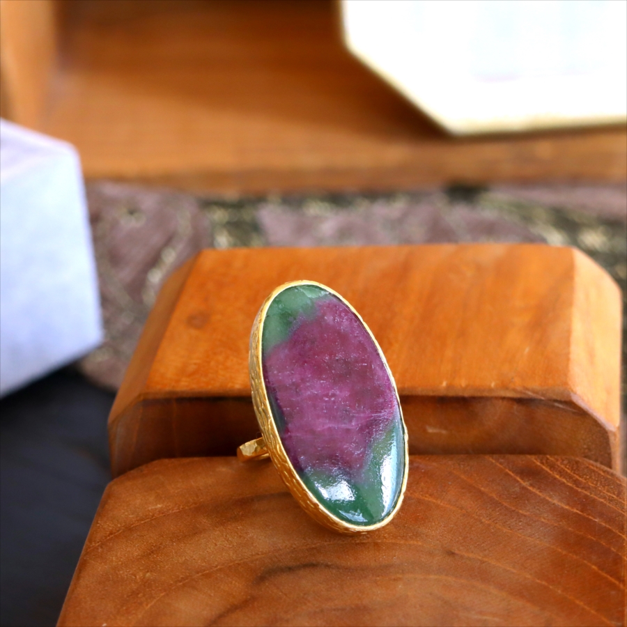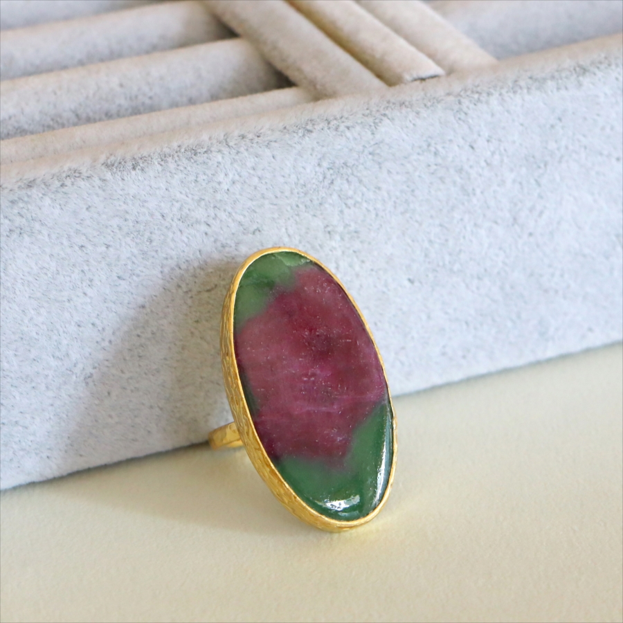 ルビーインゾイサイト リング アルサメイア 天然石 22kゴールドプレーテッド トルコジュエリー カラーストーン