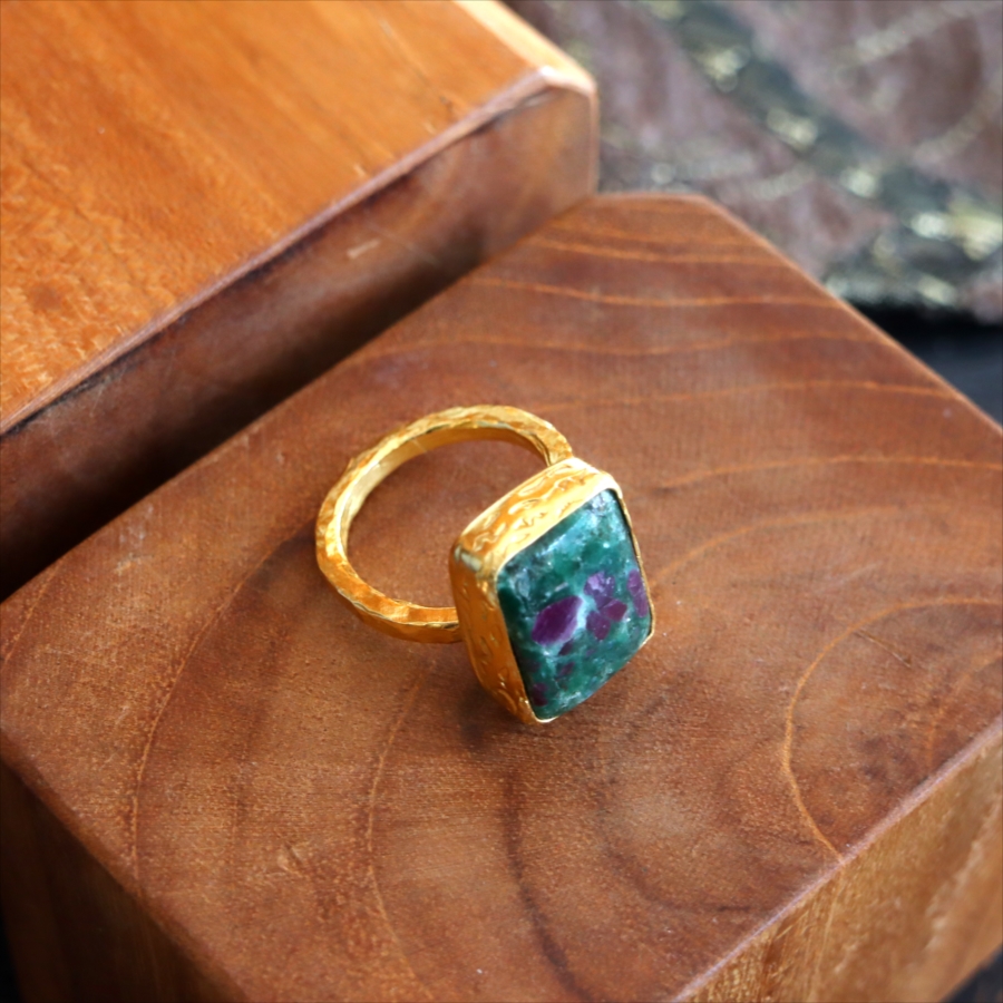 ルビーインゾイサイト リング アルサメイア 天然石 22kゴールドプレーテッド トルコジュエリー カラーストーン