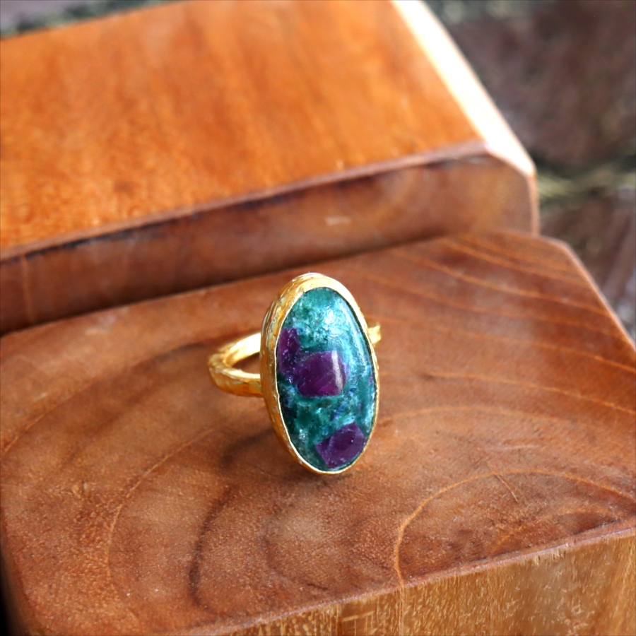 ルビーインゾイサイト リング アルサメイア 天然石 22kゴールドプレーテッド トルコジュエリー カラーストーン