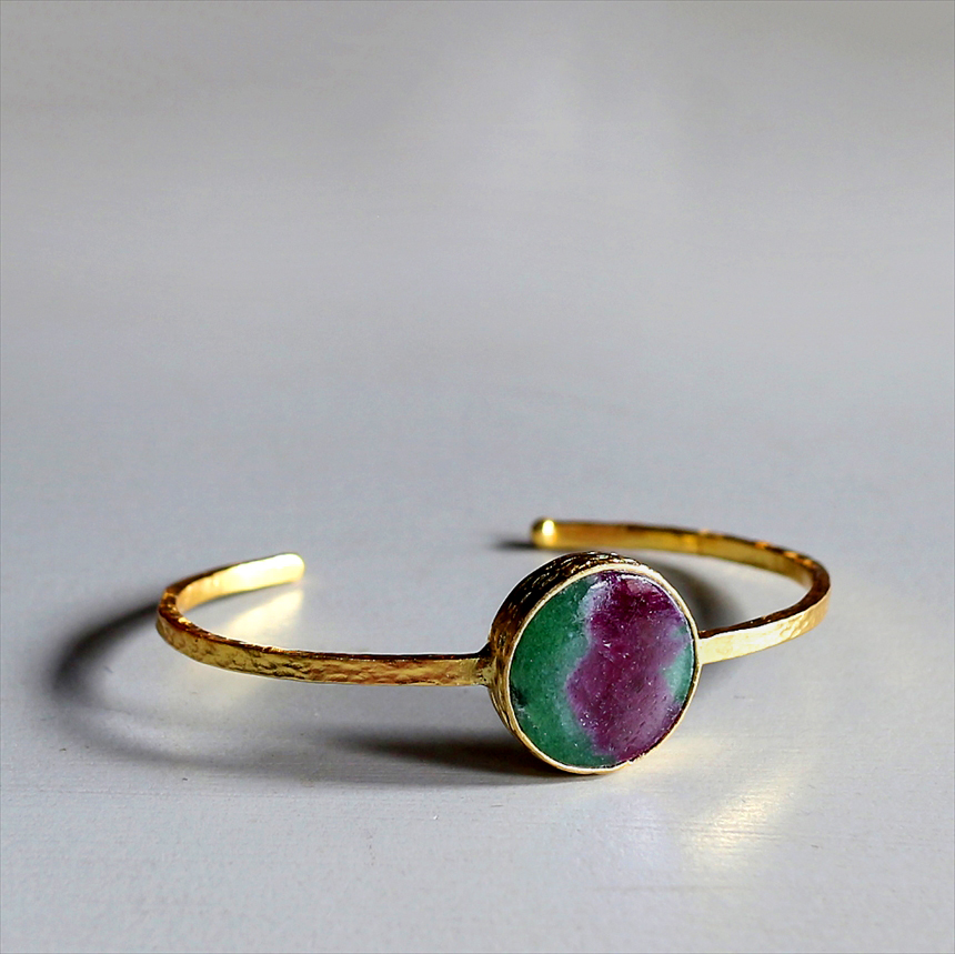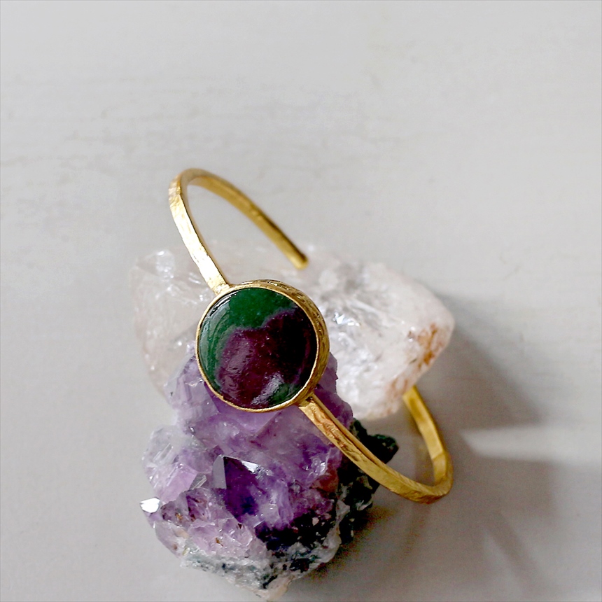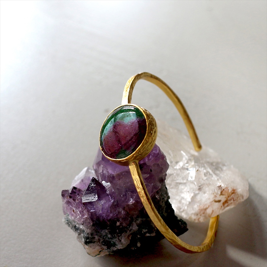 アルサメイア ルビーインゾイサイト ビッグストーンバングル 大粒 天然石22KGP トルコジュエリー ラウンド