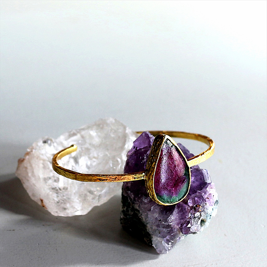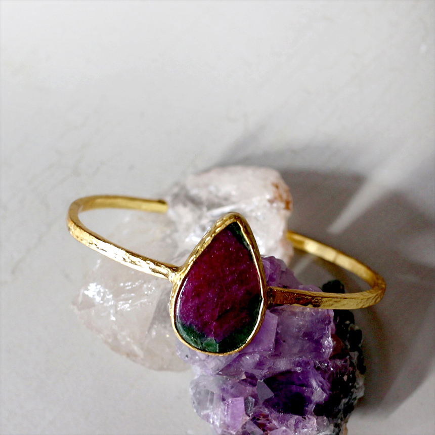 アルサメイア ルビーインゾイサイト ビッグストーンバングル 大粒 天然石22KGP トルコジュエリードロップ