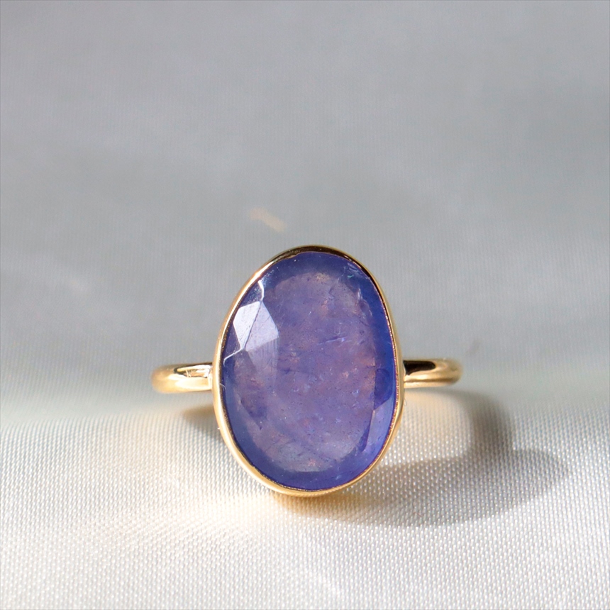 タンザナイト シルバーリング オーバル 縦長 18KGF 天然石 トルコジュエリー カラーストーン