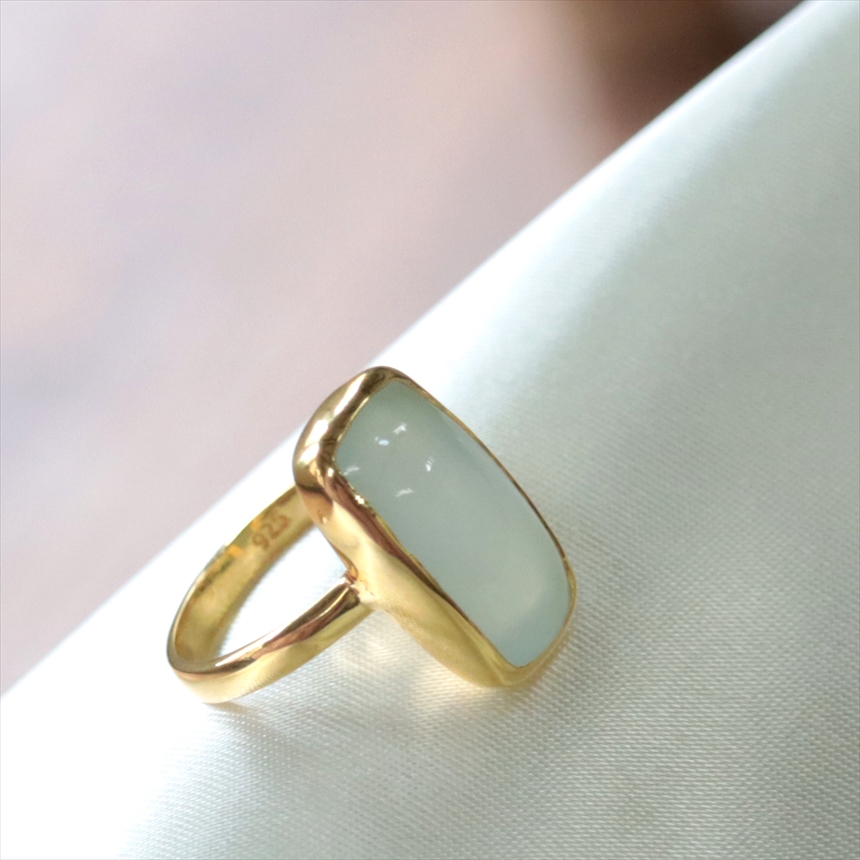 アクアマリン シルバーリング レクタングルカボション 大粒 18KGF 天然石 トルコジュエリー カラーストーン