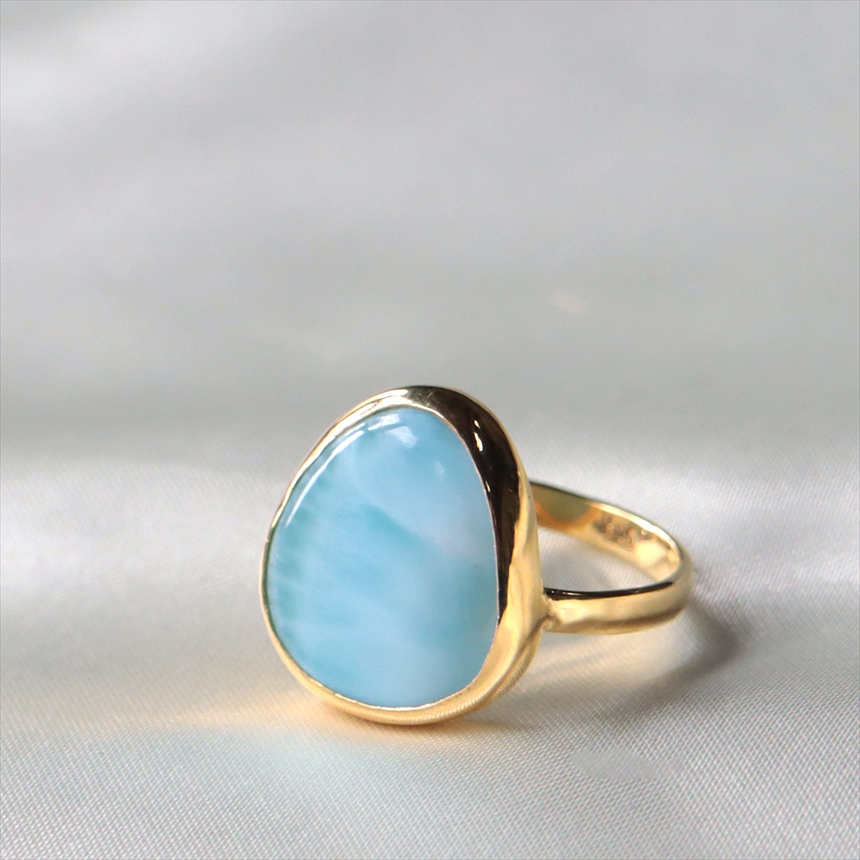 ラリマー ラフカット シルバーリング 18KGF 天然石 トルコジュエリー カラーストーン