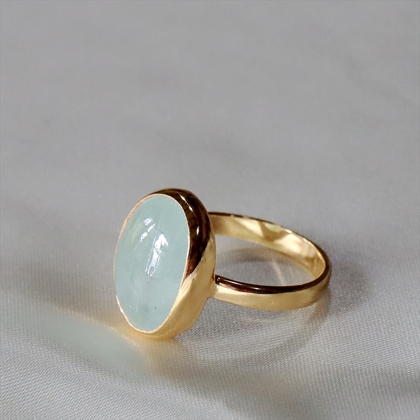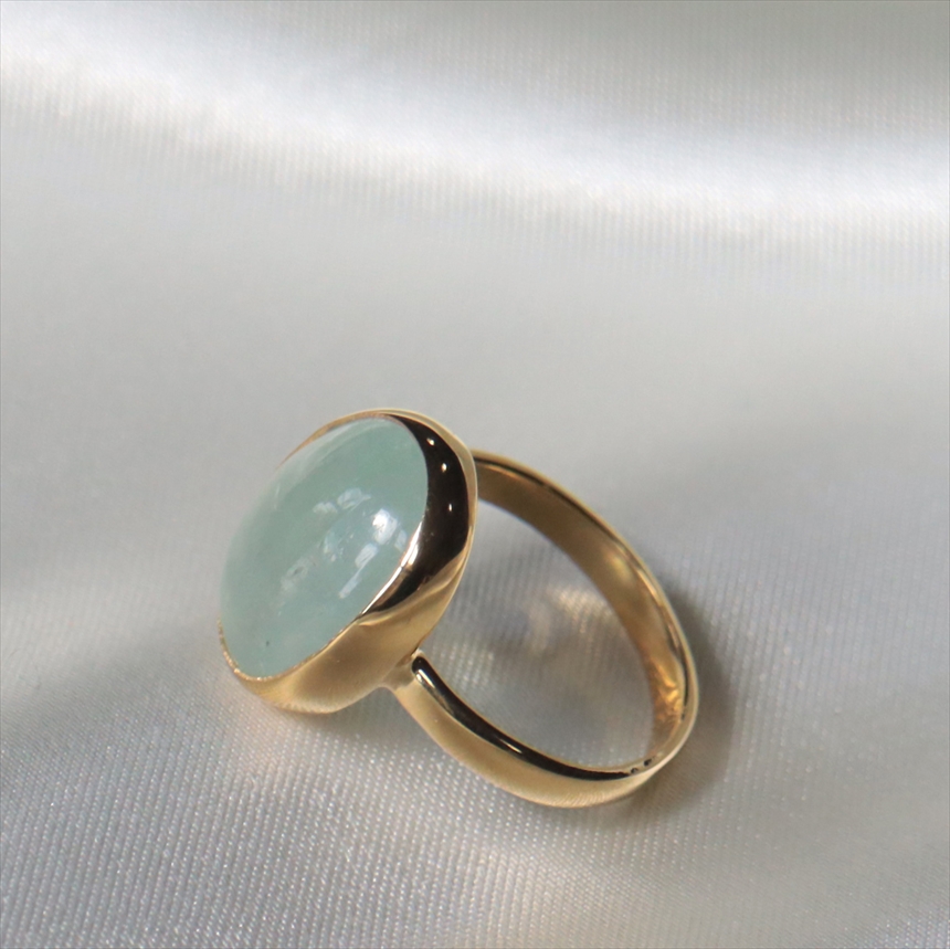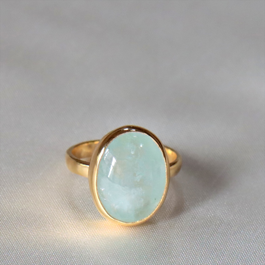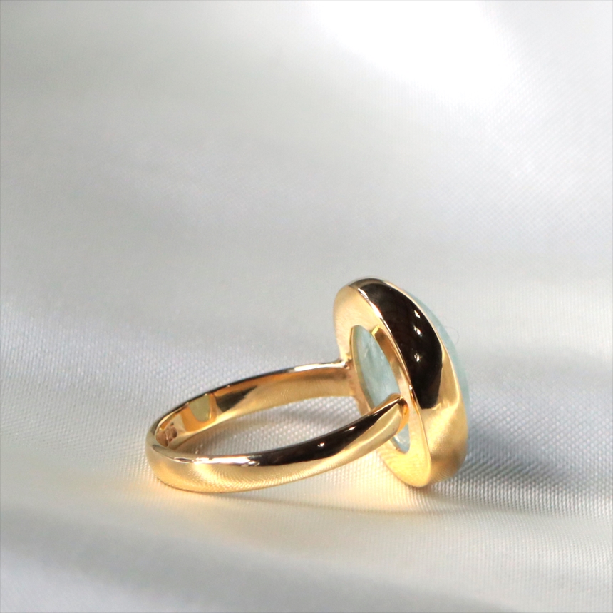 アクアマリン シルバーリング オーバルカボション 18KGF 天然石 トルコジュエリー カラーストーン