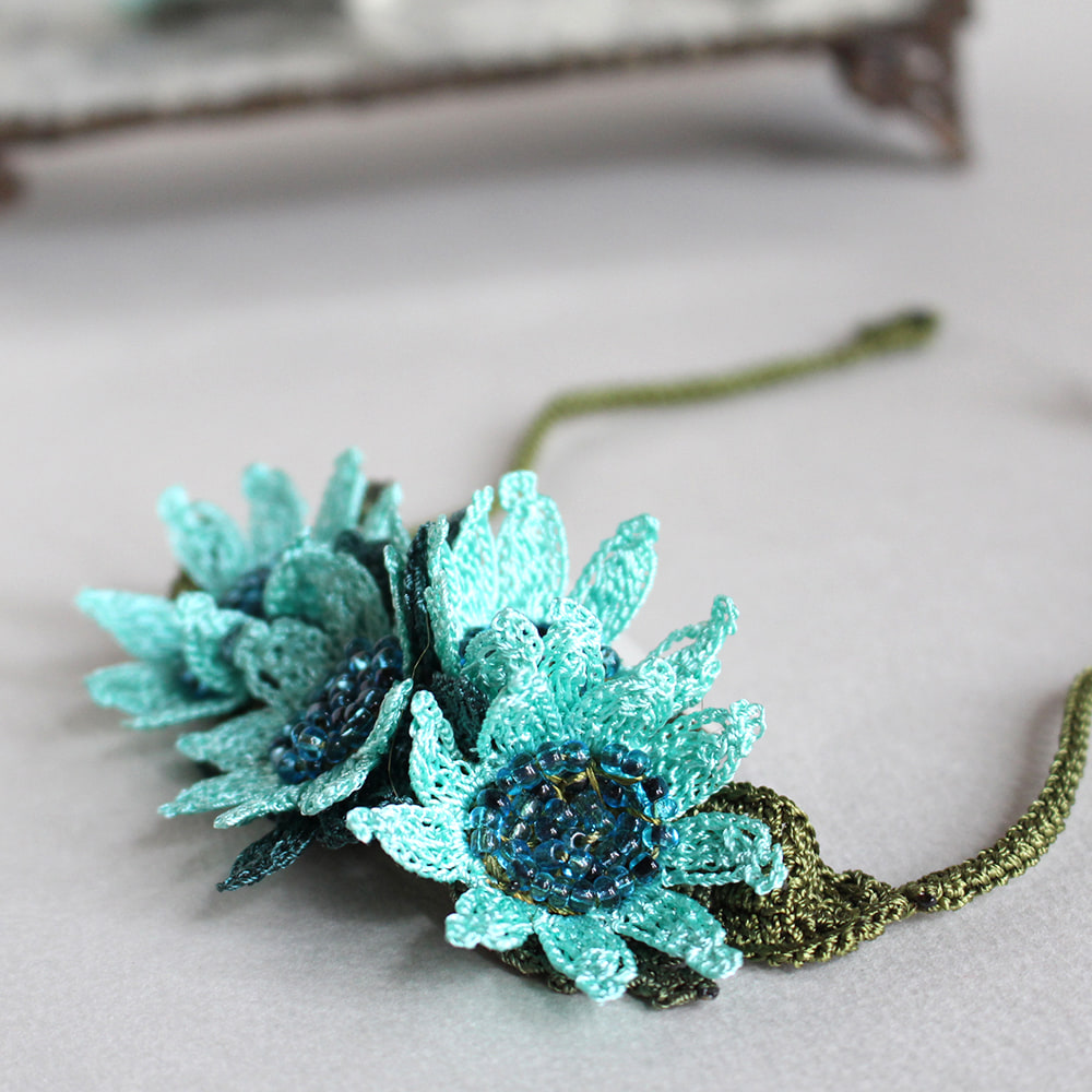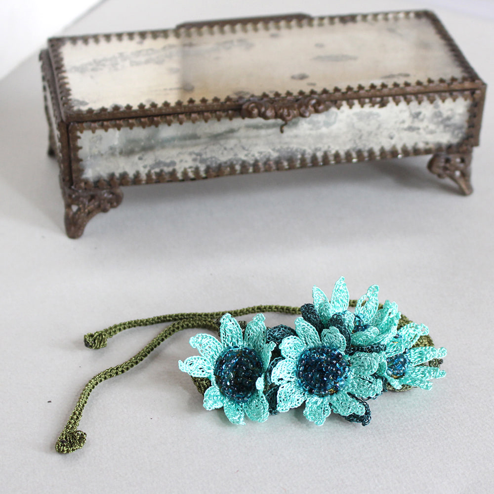 トルコの伝統的な手芸「オヤ」をモチーフにして、手編みで作られたブレスレッドです。