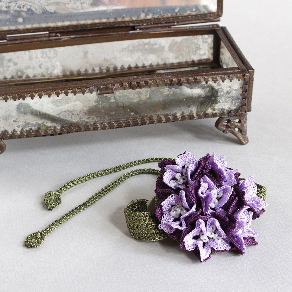 トルコの伝統的な手芸「オヤ」をモチーフにして、手編みで作られたブレスレッドです。