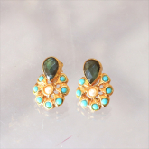 アルサメイア ピアス 古代王朝のデザイン 天然石22Kゴールドプレーテッド トルコジュエリー 色石